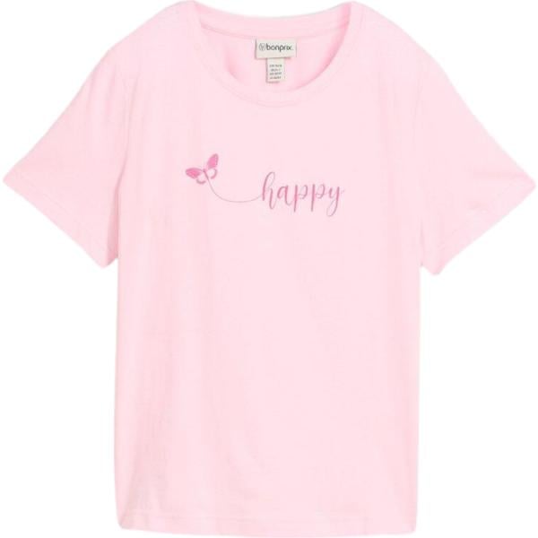 T-shirt da donna in rosa chiaro con stampe con scollo