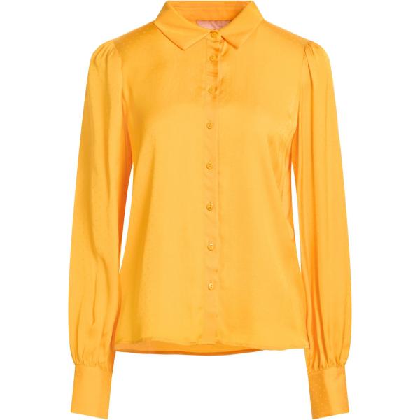 Camicia da donna in giallo scuro a pois collo classico senza tasche a maniche lunghe con bottoni in viscosa