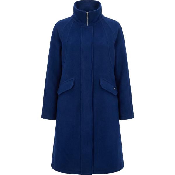 Cappotto da donna in blu scuro collo alto con zip in lana