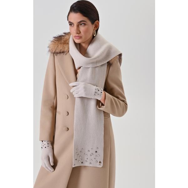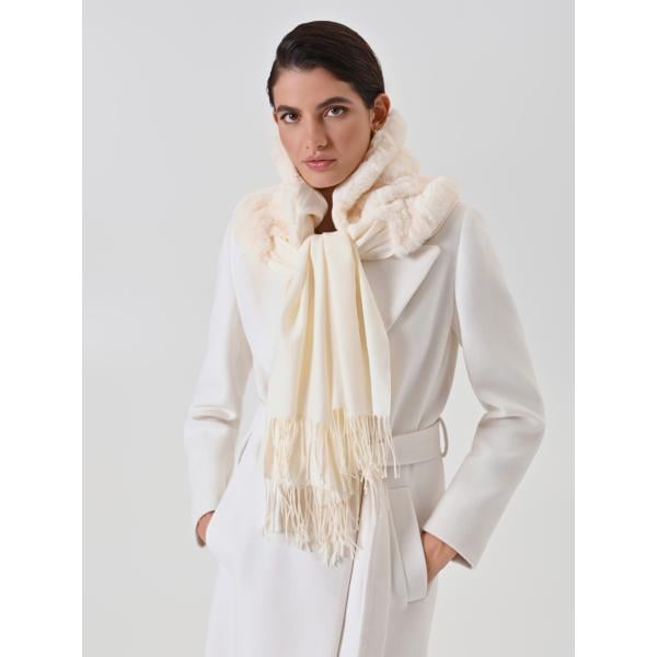 Sciarpa da donna in bianco neve lavorato a maglia in lana