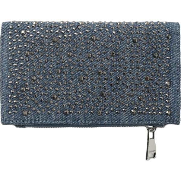 Portafoglio da donna in blu scuro con borchie con zip in viscosa
