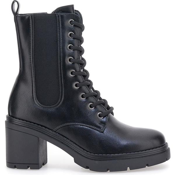 Questi combat boots The First renderanno rock tutti i tuoi outfit. Con tomaia total black, chiusura stringata e pratica cerniera laterale, e i due charms brillanti, doneranno un tocco di luce ai tuoi look preferiti. Altezza gambale 14,5 cm.