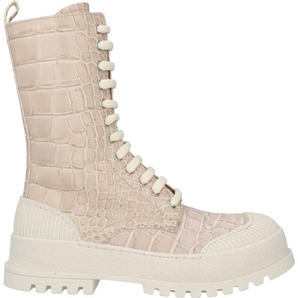 Anfibi da donna in bianco neve con stampe con tacco squadrato a punta tonda con zip in pelle