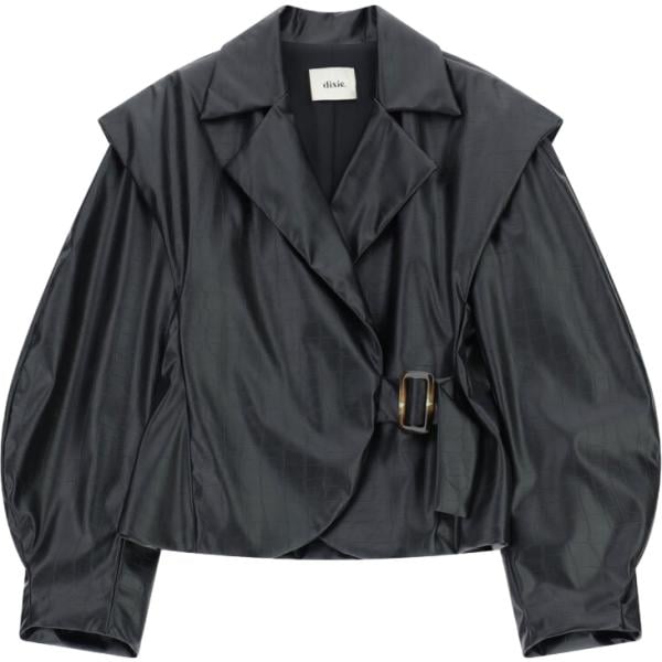 Giacca da donna in grigio scuro geometrica corto con fibbia in ecopelle