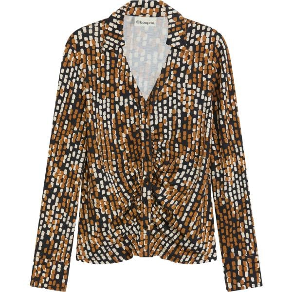 Blusa da donna con drappeggio in nero pece pied de poule con scollo in viscosa Fiorella Rubino
