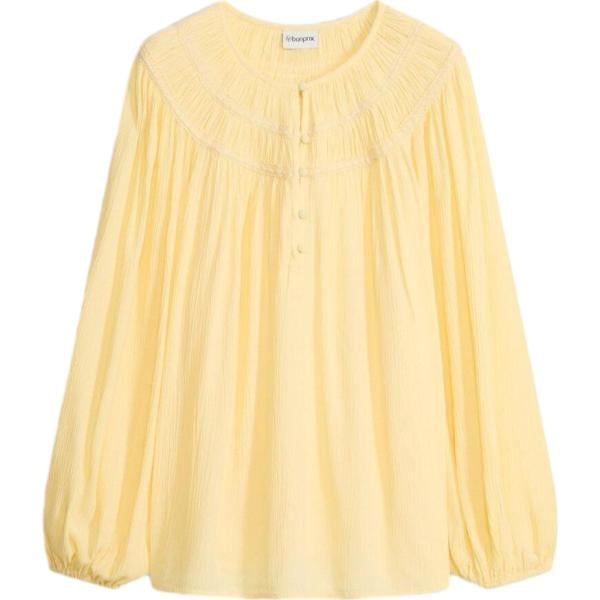 Blusa da donna in marrone chiaro con stampe con pizzo con scollo a maniche lunghe Imperial