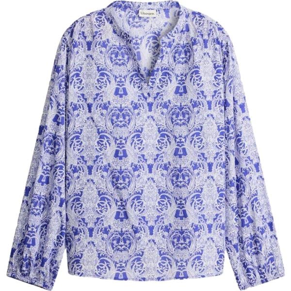 Blusa da donna in viola chiaro a righe collo a v a maniche lunghe con lacci Dixie