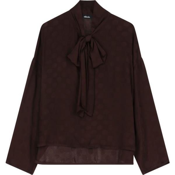 Lasciati conquistare da questa blusa a pois con taglio dritto, maniche lunghe e scollo a v valorizzato da un fiocco annodato. Perfetta per dare un tocco originale e femminile sia ad outfit da ufficio che per il tempo libero, si abbina facilmente a pantaloni o gonne per un look sempre curato e comodo.