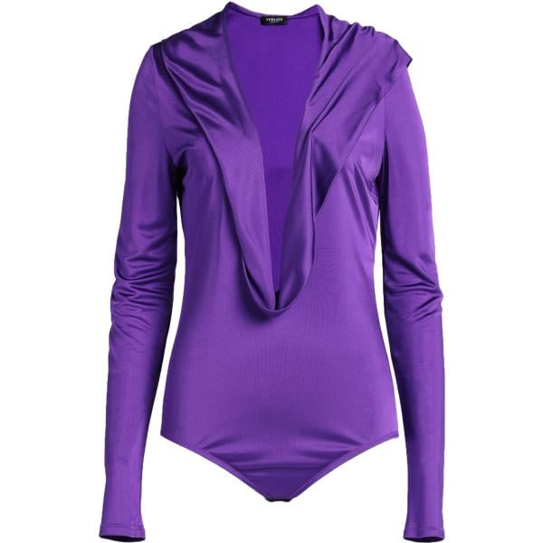Corpo da donna in viola chiaro con paillettes con spalline senza tasche a maniche lunghe