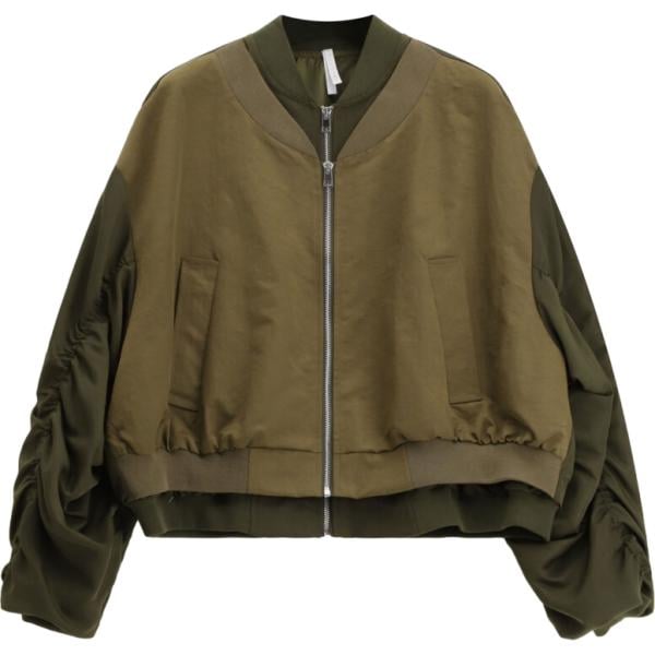 Bomber crop con silhouette ampia e maniche voluminose, arricchito da una raffinata stampa floreale. Chiusura con zip centrale che dona praticità all’indosso, collo stondato dal taglio minimalista. Ideale per comporre look personali ed espressivi grazie al design distintivo e contemporaneo.