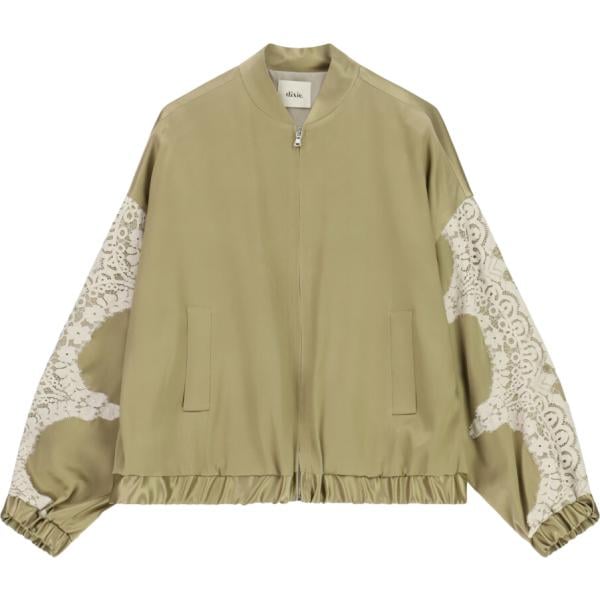 Bomber da donna in marrone chiaro con pizzo con zip