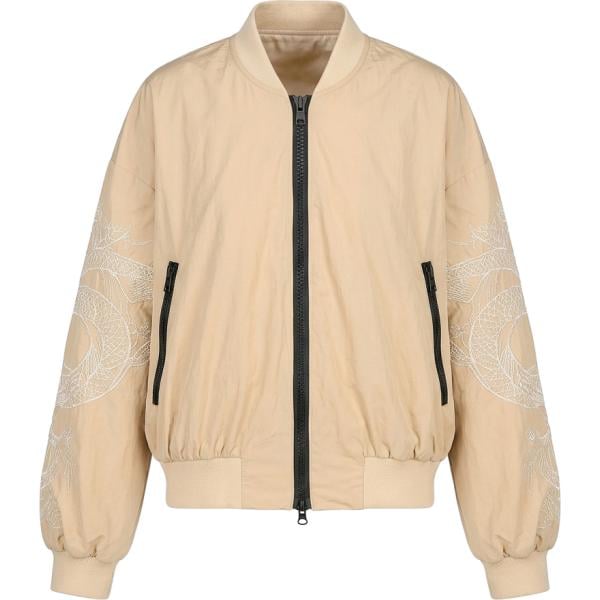 Bomber da donna in beige sabbia con stampe lungo con zip
