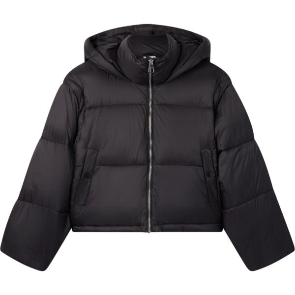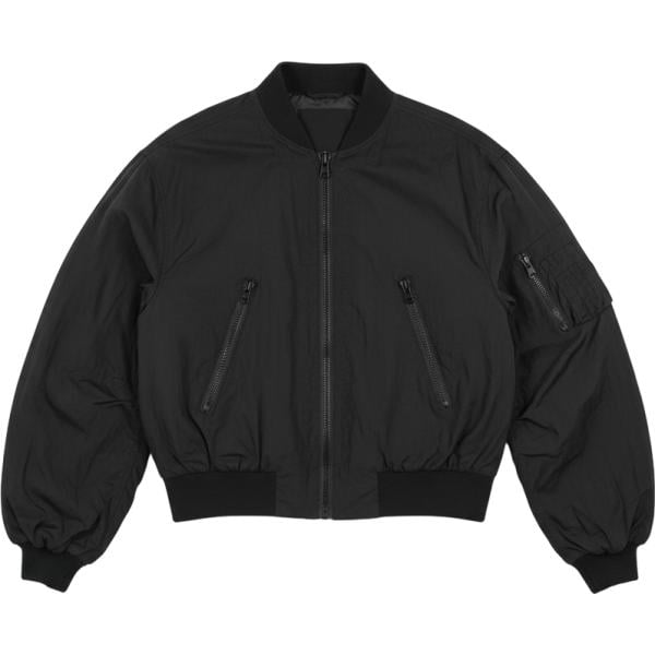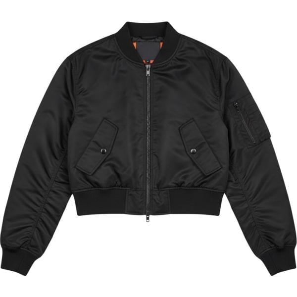 Bomber da donna in nero pece a fiori corto con zip in nylon