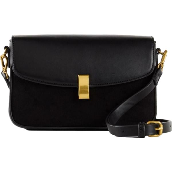 Gonna longuette da donna in nero pece in viscosa bonprix, Pullover da donna in bianco avorio collo a dolcevita monopetto in lana Doppelganger, Stivaletti chelsea da donna in marrone scuro Prima Riga, Cappotto da donna in marrone scuro a quadri con frange Terranova, Collana da donna in beige sabbia Dixie, Borsa a mano da donna in nero pece Freddy.