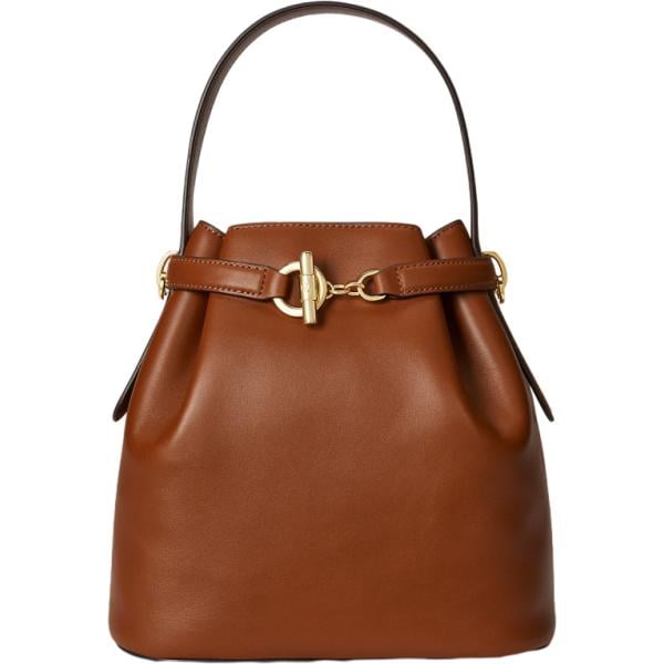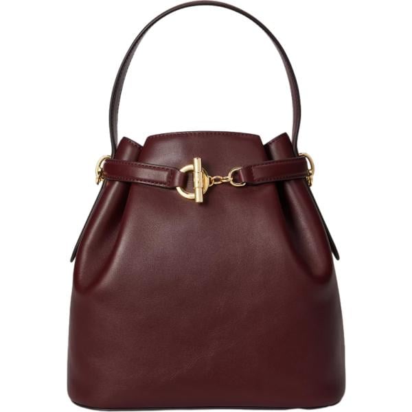Borsa a secchiello da donna in marrone scuro effetto scamosciato con coulisse in pelle Borbonese