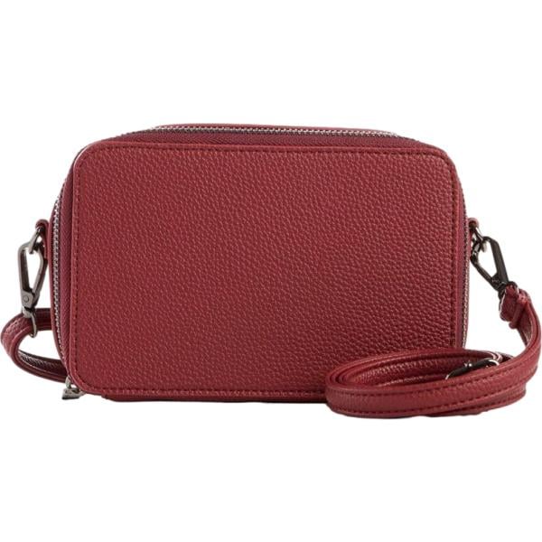 Pantaloni skinny da donna in rosso classico curvy modellante in cotone organico Freddy, Anfibi da donna in bordeaux con tacco squadrato con zip Bugatti, Maglione da donna in rosso classico con scollo a maniche lunghe Dixie, Borsa a spalla da donna in marrone scuro corto Dixie, Giacca soprabito da donna biker in marrone scuro corto con zip Imperial.