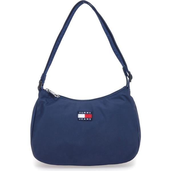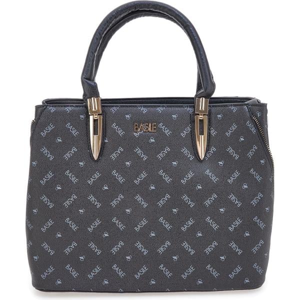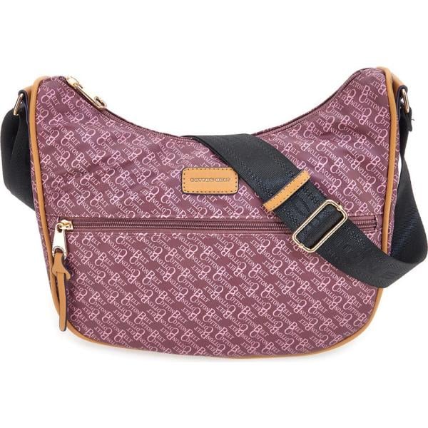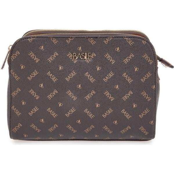Borsa a spalla da donna in marrone scuro con stampe con zip