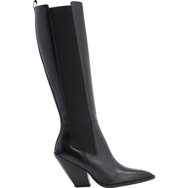 Stivali da donna in bianco neve con tacco a punta in pelle