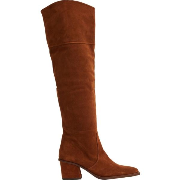 Stivali sopra il ginocchio da donna in bianco neve con tacco squadrato a punta con zip in pelle