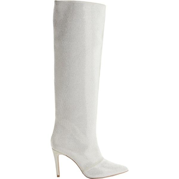 Stivali da donna in bianco neve effetto scamosciato con tacco spillo a punta in pelle