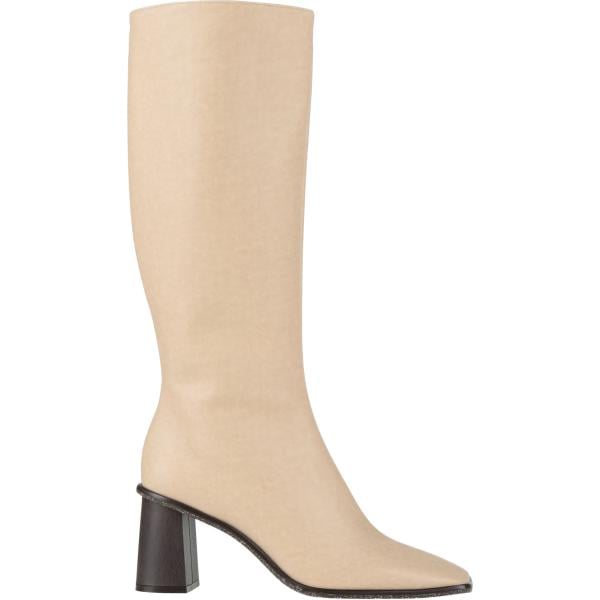 Stivali da donna in beige sabbia con tacco squadrato a punta quadrata con zip