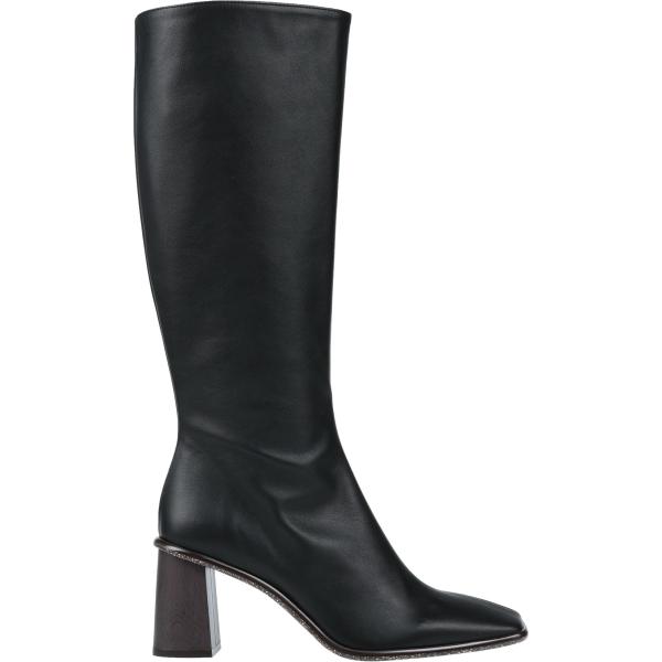 Stivali da donna in nero pece con tacco squadrato a punta quadrata con zip