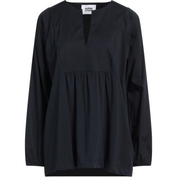 Top da donna in nero pece collo a v a maniche lunghe in cotone