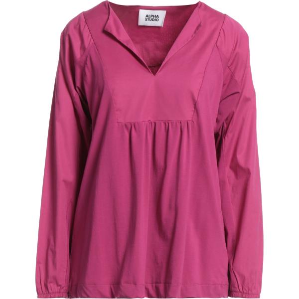 Top da donna in rosa scuro collo a v a maniche lunghe in cotone