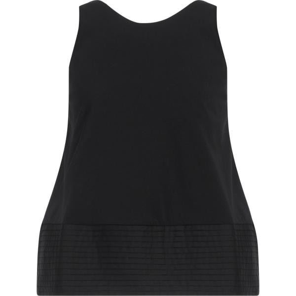 Top da donna in nero pece plissè girocollo senza maniche in cotone