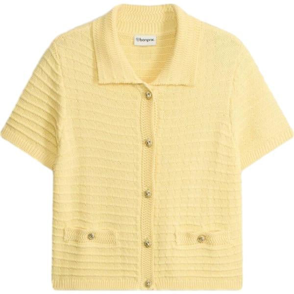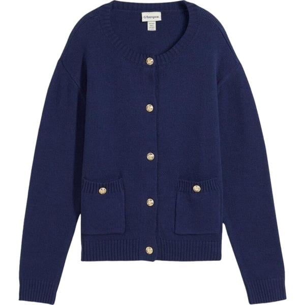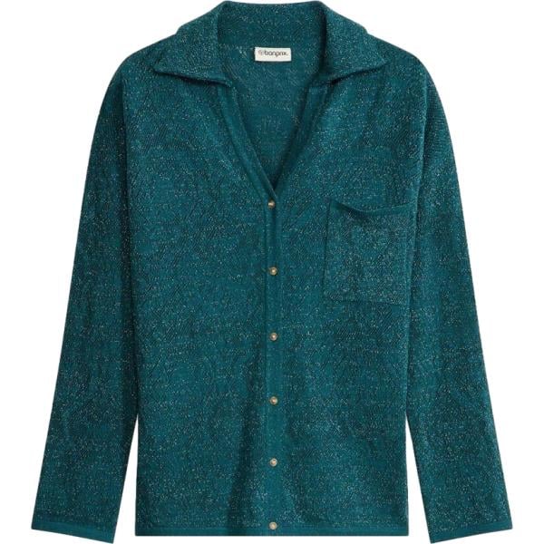 Cardigan da donna in azzurro a righe lavorato a maglia