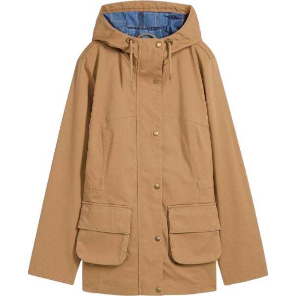 Parka da donna in beige sabbia a quadri tessuto impermeabile
