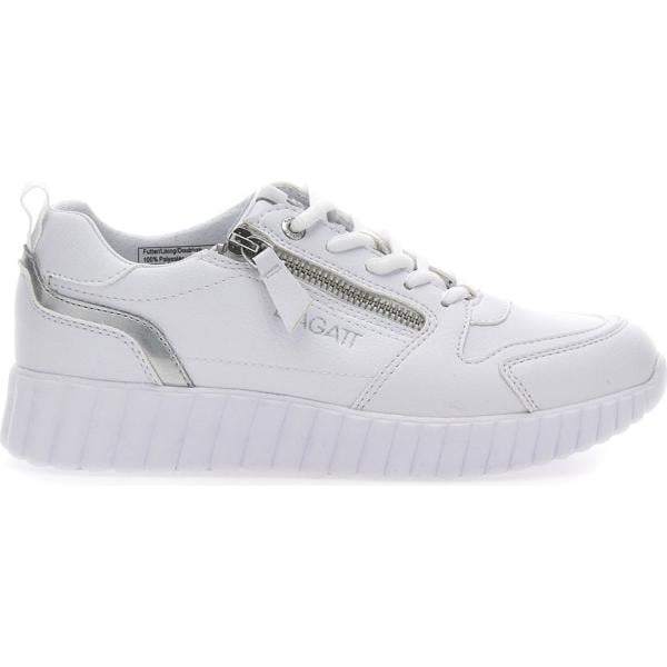Sneakers da donna in bianco avorio platform con lacci in oro