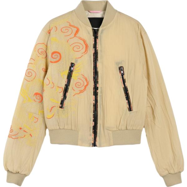 Bomber da donna in beige sabbia con paillettes con zip in nylon