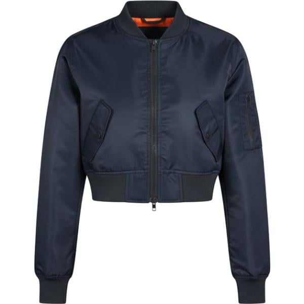 Bomber da donna in blu scuro a fiori corto con zip in nylon