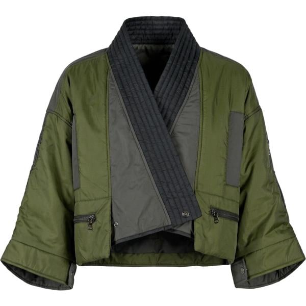 Kimono da donna in nero pece con stampe collo alto lungo in nylon