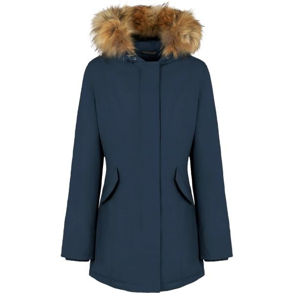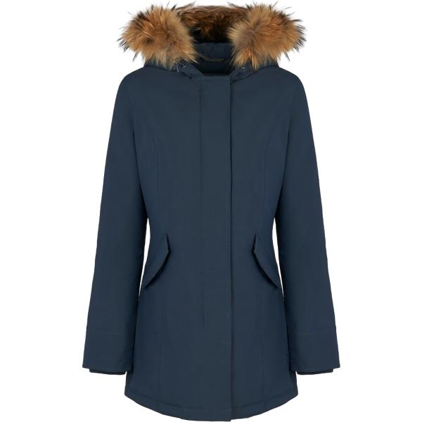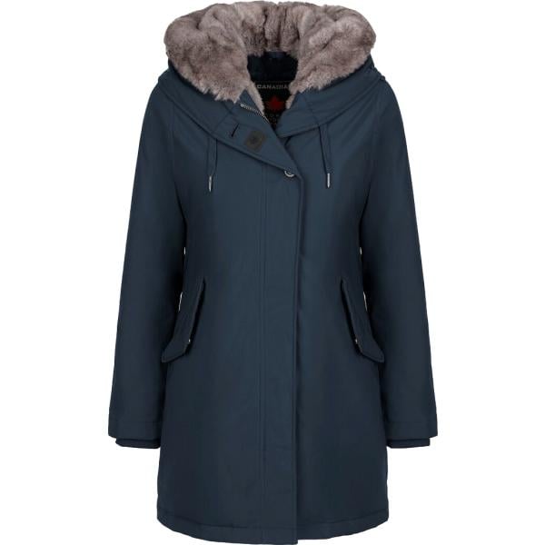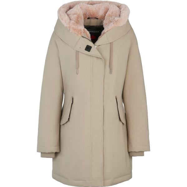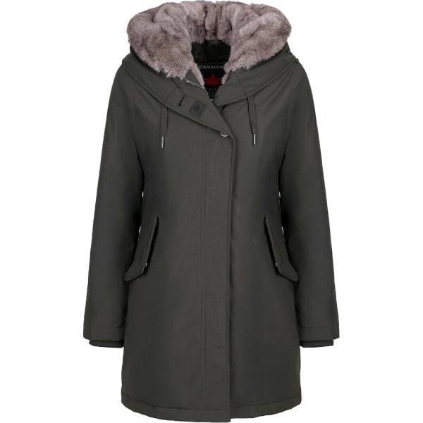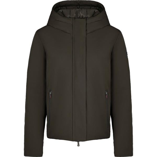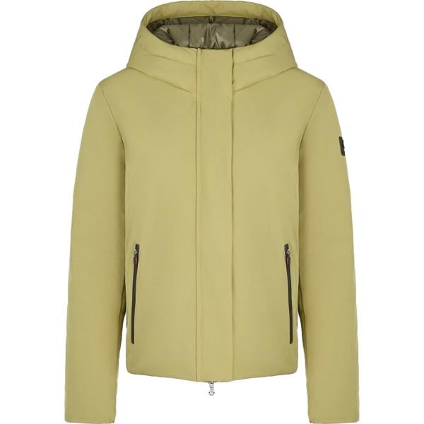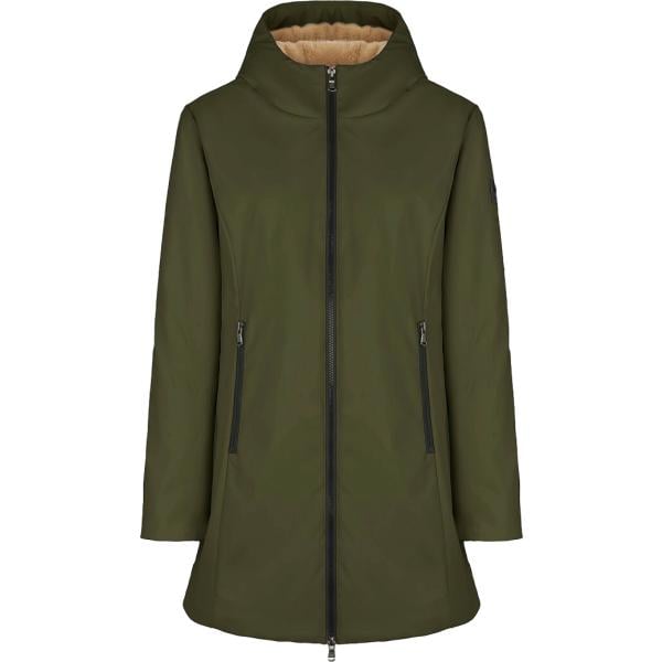 Parka da donna in verde oliva collo con cappuccio con zip in poliestere