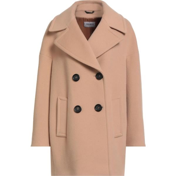 Cappotto da donna doppiopetto in marrone chiaro collo con revers a maniche lunghe in lana