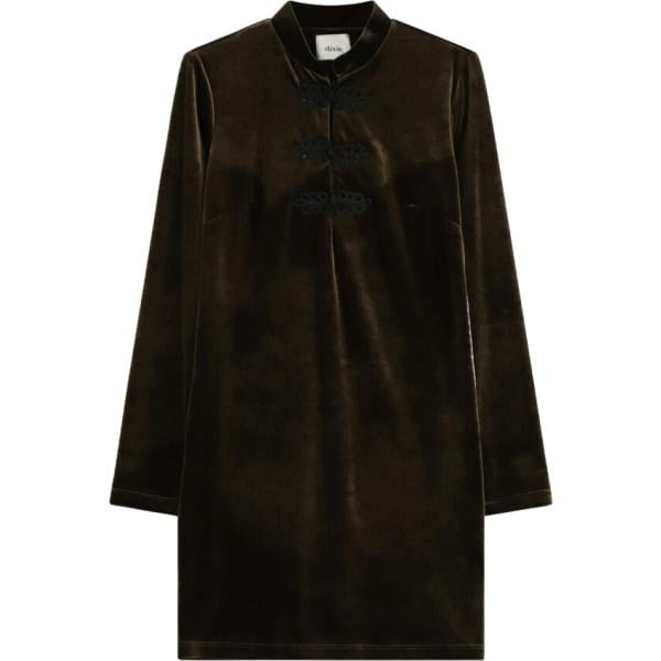 Vestito corto da donna in marrone scuro plissè corto senza maniche con zip