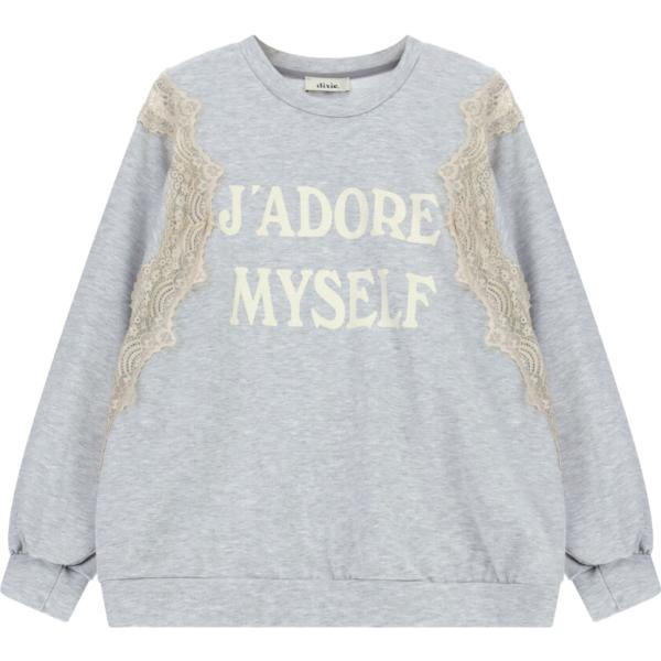 Felpa da donna in grigio chiaro con stampe con pizzo girocollo a maniche lunghe