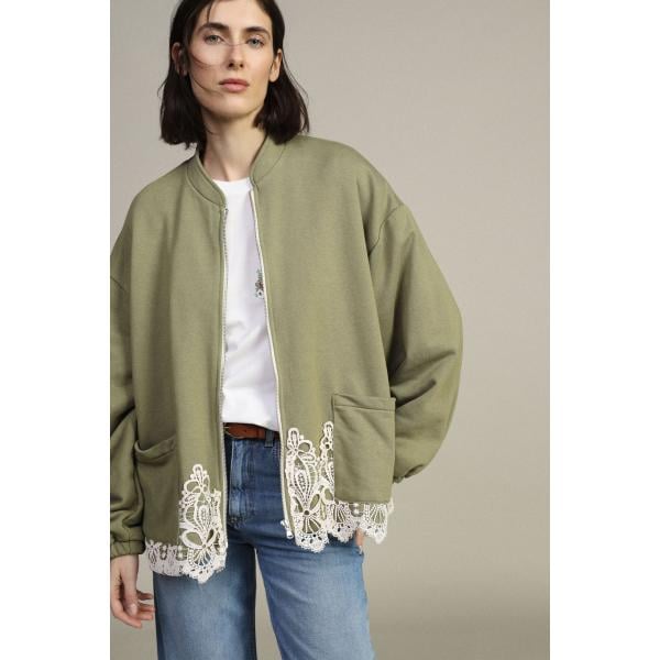 Felpa da donna in verde chiaro con pizzo con zip