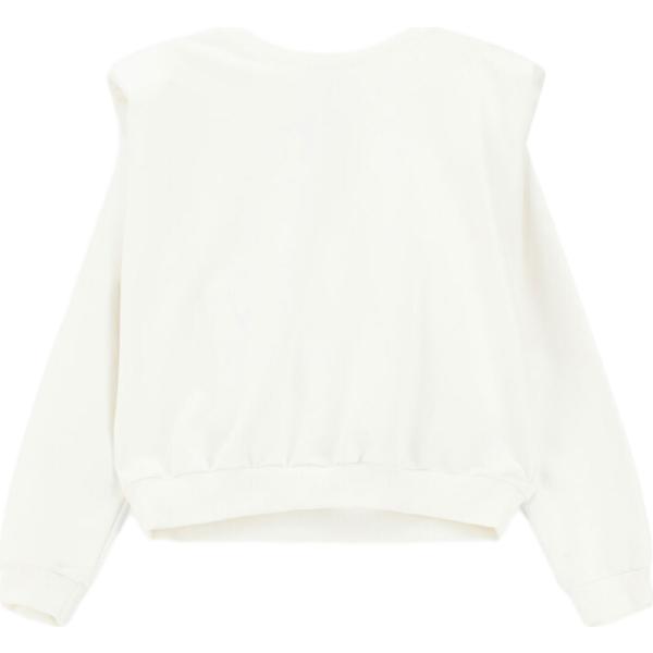 Felpa da donna in bianco avorio con pizzo girocollo