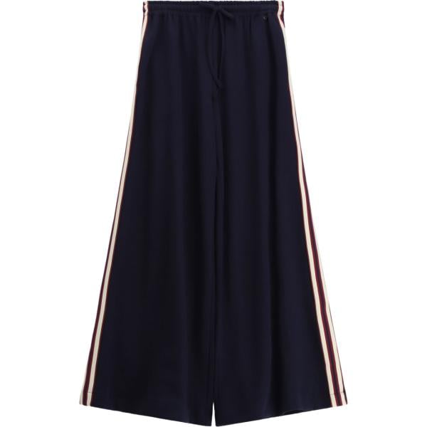 Pantaloni da donna in blu scuro a vita alta con coulisse