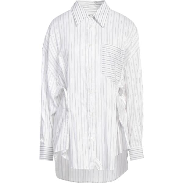 Camicia da donna in bianco neve a righe collo classico lungo a maniche lunghe con bottoni in viscosa