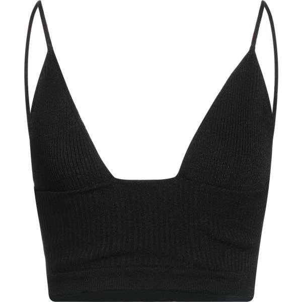 Top da donna in nero pece lavorato a maglia con scollo senza maniche in viscosa