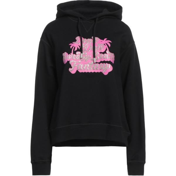 Felpa con cappuccio da donna in nero pece con stampe con glitter collo con cappuccio a maniche lunghe in cotone