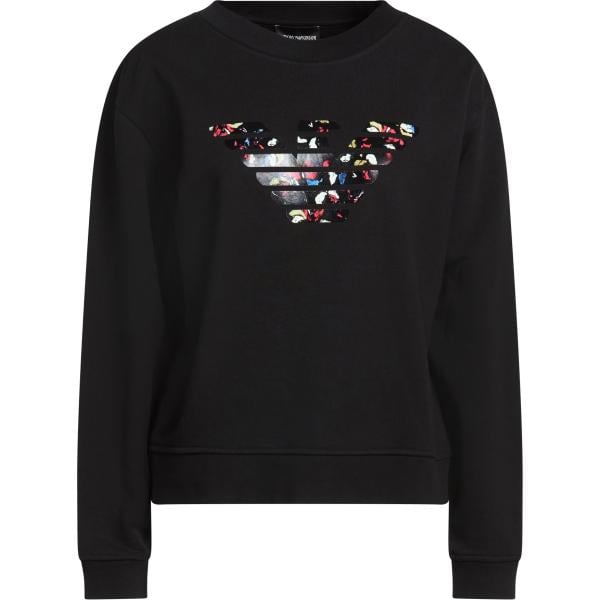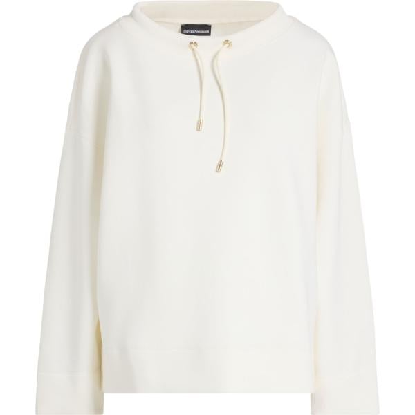 Felpa da donna in bianco neve con stampe girocollo a maniche lunghe in cotone