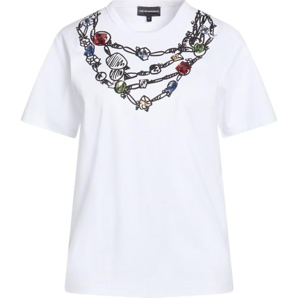 T-shirt da donna in bianco neve con stampe girocollo a maniche corte in cotone
