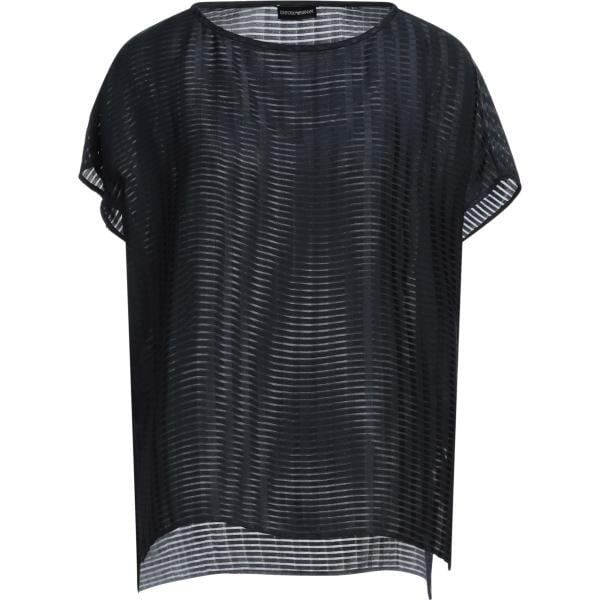 Top da donna forma asimmetrica in nero pece girocollo a maniche corte