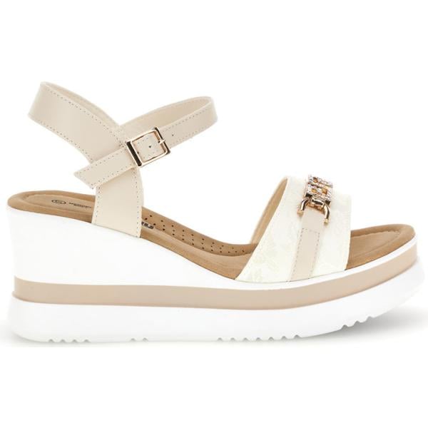 Sandali da donna in grigio chiaro con tacco zeppa con cinturino