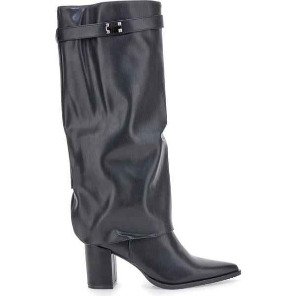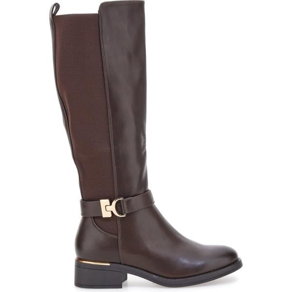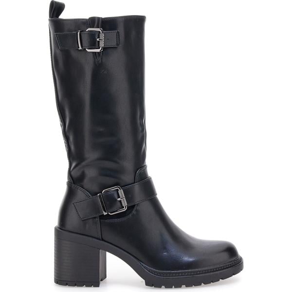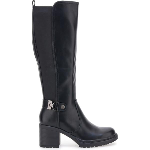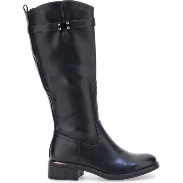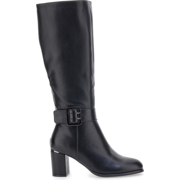 Stivali da donna in grigio scuro con tacco squadrato con cinturino